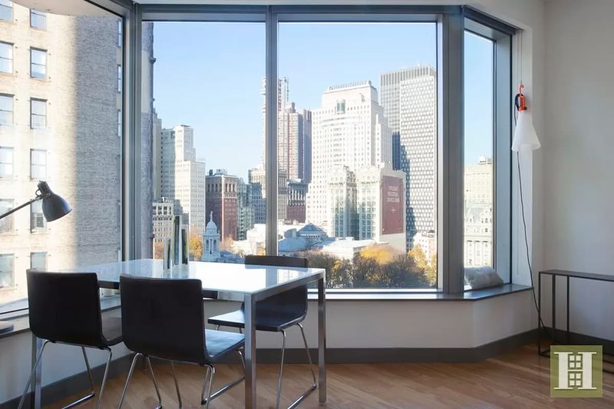Featuring a corner layout, this One Bedroom/ One Bathroom apartment stands out in a building of unique apartments which bring the drama of the dynamic exterior wall movement into the residences. The undulating facade creates free-form bay windows which flood the home with light. All interior finishes have been selected by Gehry, including his signature honey-colored, vertical grain Douglas Fir cabinetry, hardwood floor, marble tile, washer/dryer in the apartment (!) and top-of-the-line appliances & fixtures. For members, the full-service building features 22,000 square feet of indoor and outdoor health, wellness, social and entertainment amenity spaces on par with world-class hotels and resorts, including two terraces with grills, cafe seating & dining cabanas, 50-foot pool set within skylit space surrounded by fully retractable glass doors, creating a seamless integration with the wraparound sundeck, lounge area with grand piano & private dining room, 3,300-square foot state-of-the-art fitness center, boxing & private training studios, spa treatment suite, library, both a tween’s den & children’s playroom as well as a screening room with Gehry-designed amphitheater seating. All conveniently located near restaurants, shopping, many transportation options at Fulton Street Station and all the best FiDI and TriBeCa have to offer! NO FEE!!!